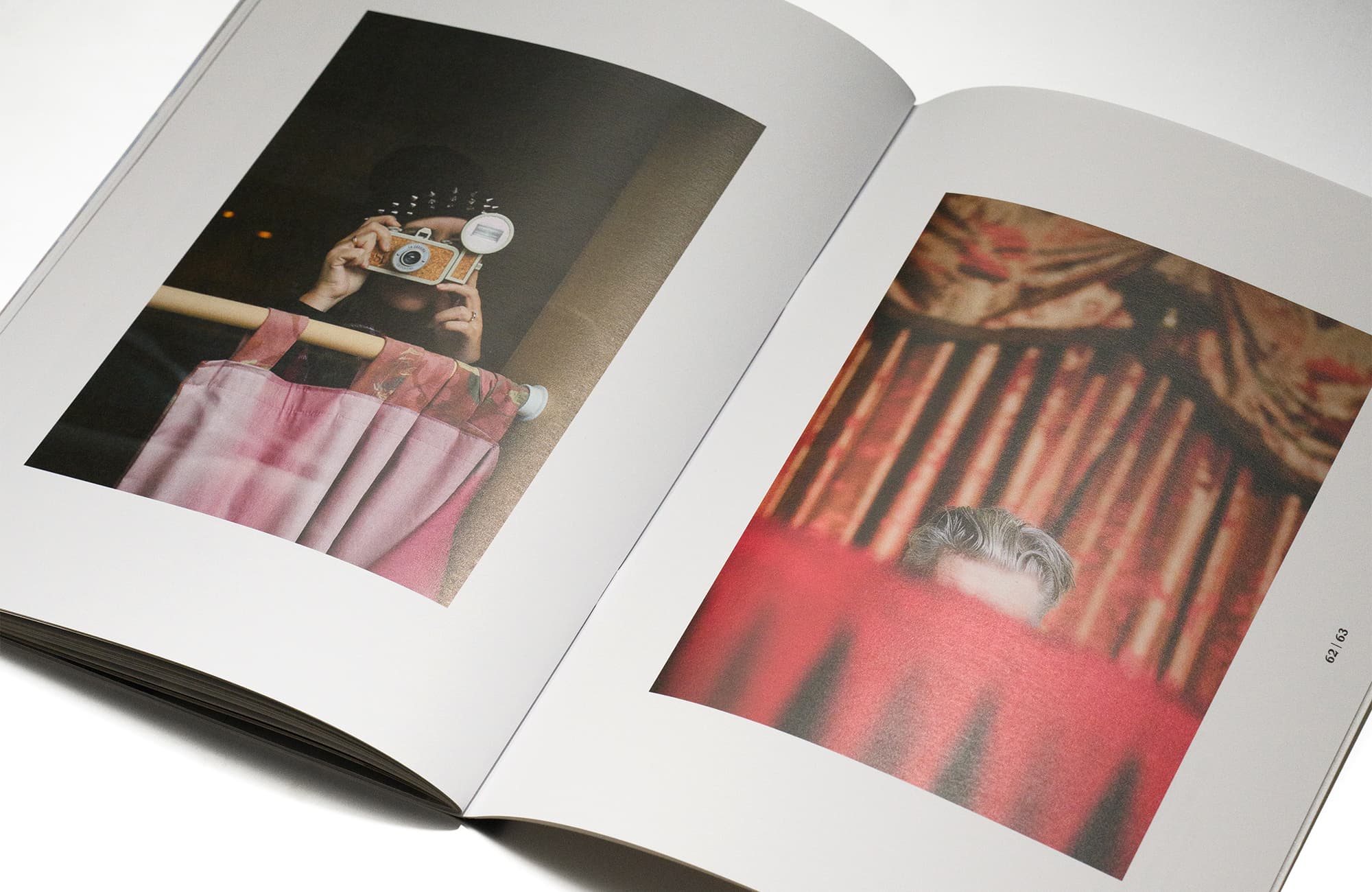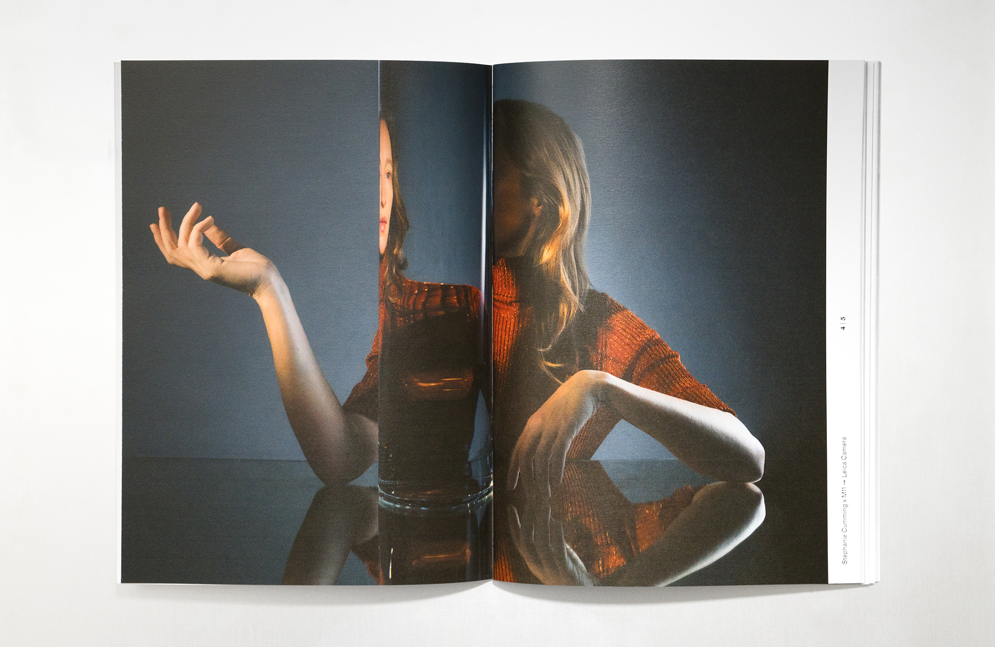 Die Gestaltung des Zines – innen wie außen – ist bewusst minimalistisch angelegt. Der schlichte, aus schimmerndem Papier und einer leinenen Rückenverstärkung gestaltete Umschlag besticht durch eine kleine kreisrunde Stanzung. Diese weckt Assoziationen mit einer Camera obscura und lenkt den Blick auf ein Detail der ersten Abbildung im Kern der Publikation. Hier haben die Fotos genügend Raum, sich zu entfalten. Die beschreibenden Infotexte sind vertikal an den Blattrand gesetzt und navigieren die Lesenden leichtfüßig durch das Zine.