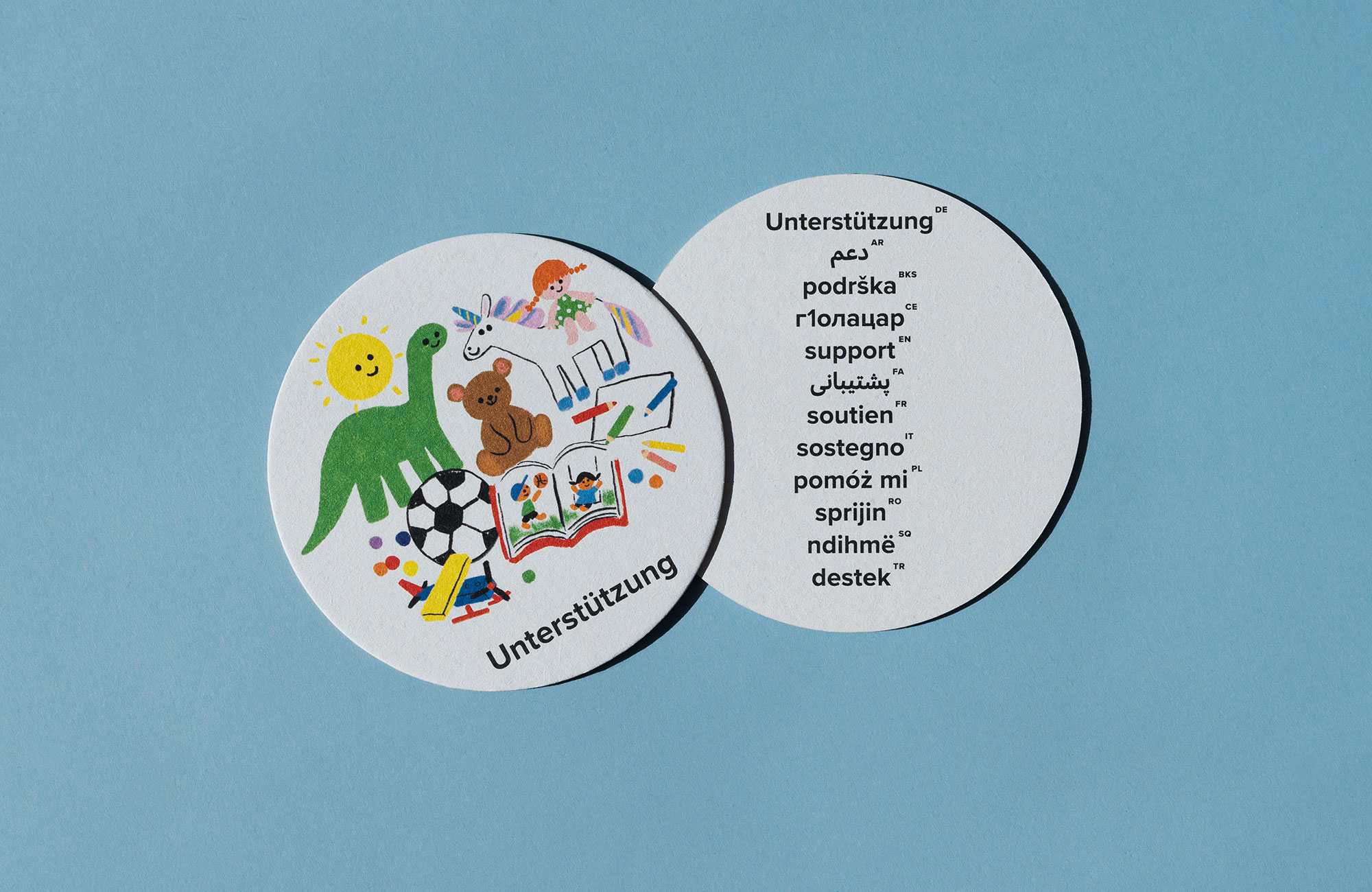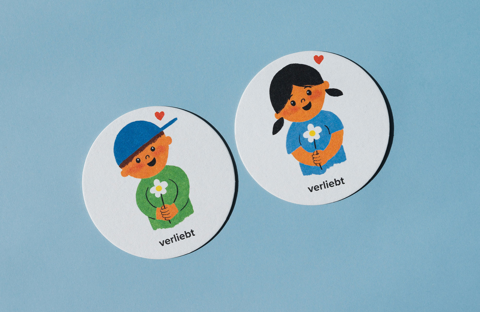 Da die Karten gut in der Hand liegen sollten, wurden runde Bierdeckel als Trägermaterial gewählt. Auch für die eigens entwickelte Verpackungs-Box und das Leporello wurden haptisch ansprechende Papiersorten eingesetzt.