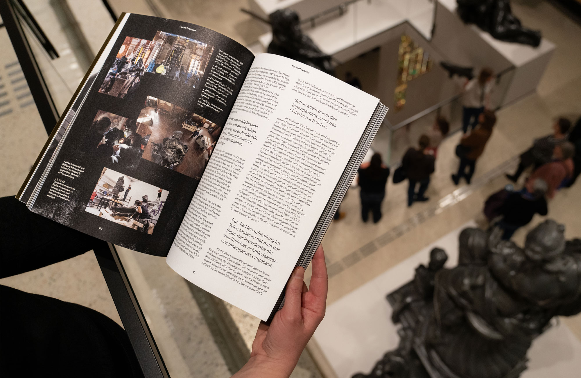 Fachleuten wie Lai*innen bietet die im Residenz Verlag erschienene Publikation Einblicke in die faszinierende Welt der Restaurierung. Das Editorial Design von Es geht nicht um schön greift diesen Grundtenor auf. Es entfaltet die Aura eines „Magazins“, das die Leser*innen zum Schauen und Staunen animiert und dazu einlädt, die dargestellten Objekte quasi mit Röntgenaugen zu durchleuchten und den State of the Art der Restaurierung kennenzulernen, der sowohl High-Tech-Geräte als auch handwerkliche Methoden umfasst.