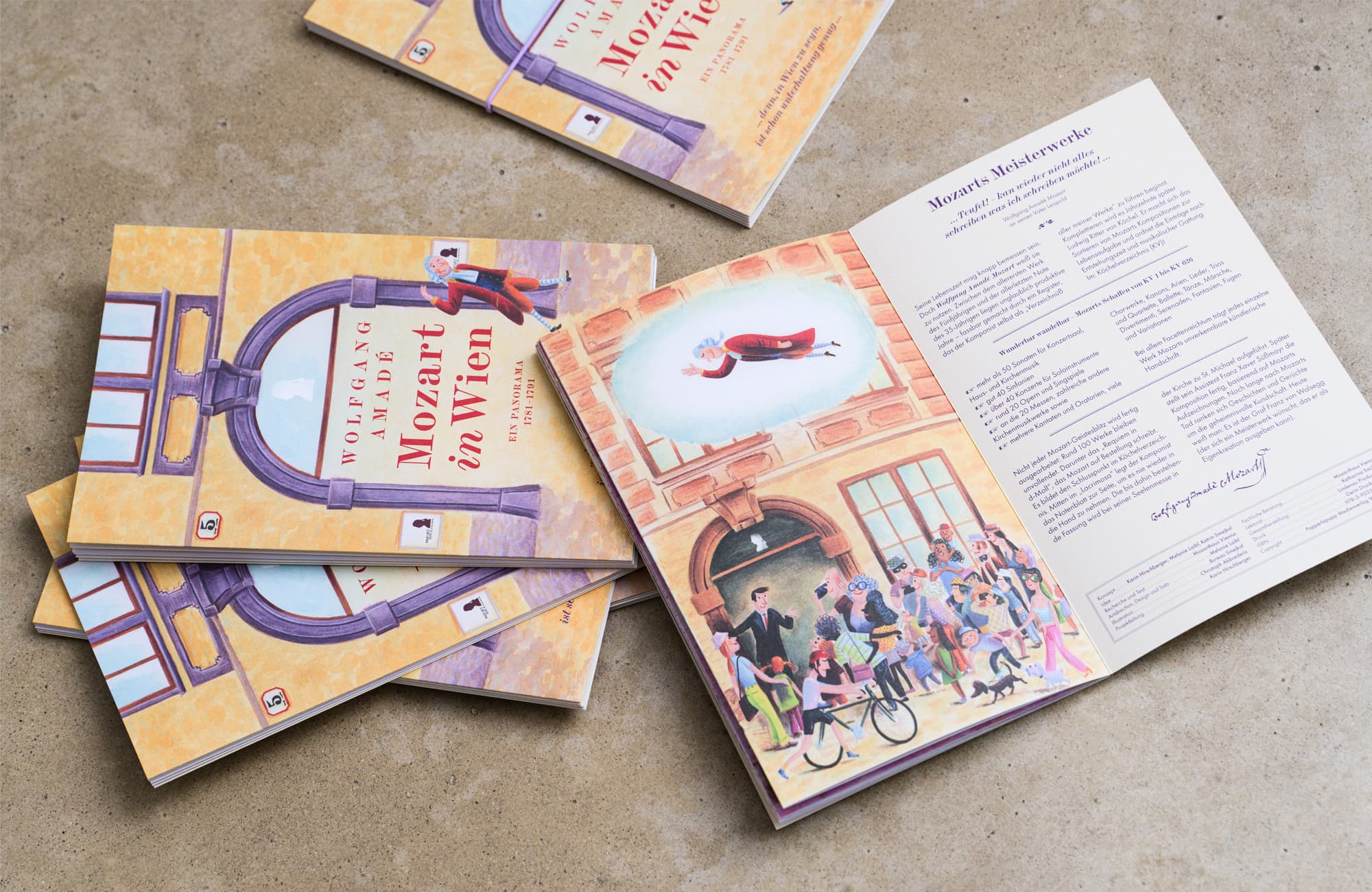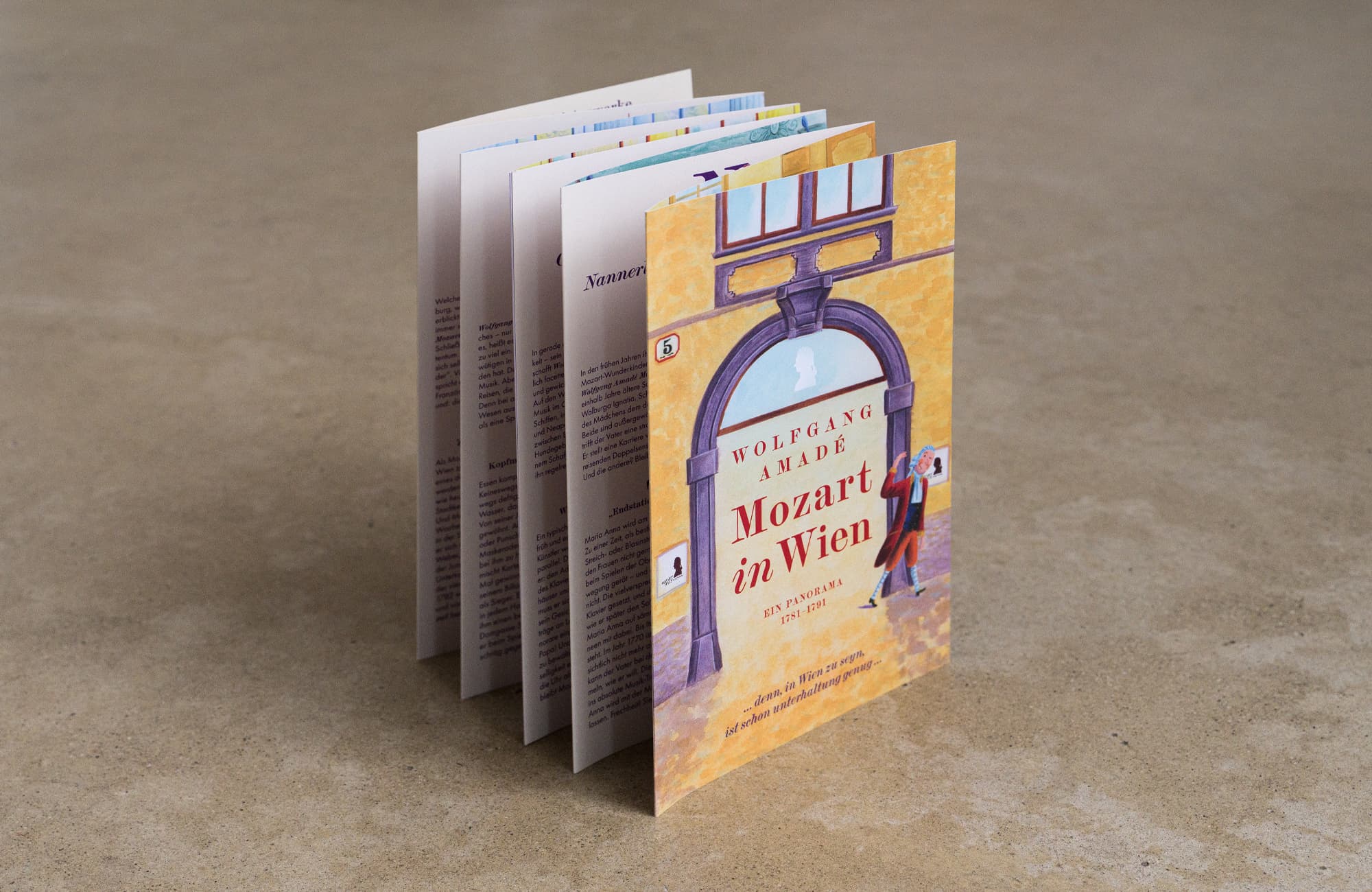 Die kleine, kunstvoll gestaltete Publikation erzählt vom Leben eines Komponisten, der in Salzburg als Wunderkind geboren wurde, um in Wien als Genie in die Musikgeschichte einzugehen: Wolfgang Amadé Mozart. Einmal geöffnet, zeichnet sie ein textliches wie bildliches Panorama seines Wirkens in der Kaiserstadt.